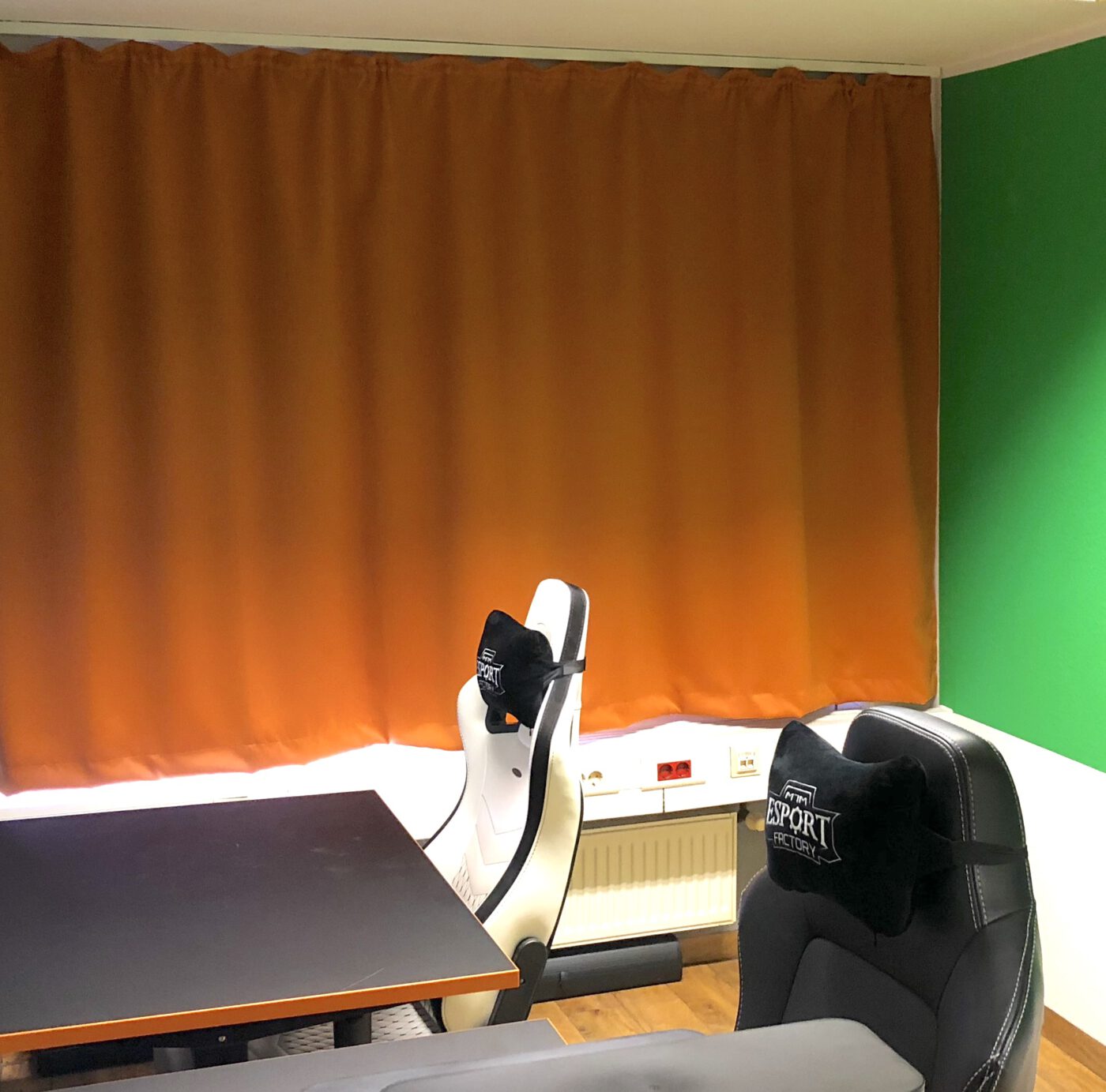 Baumwolle-Samt hat eine sehr angenehme Oberfläche die gleichzeitig matt ist. Als beleuchteter Durchgangsvorhang für eine kleine Location ist dieser Vorhang sehr geeignet. Das wäre hier ein toller Theater-Vorhang im Clubbereich.